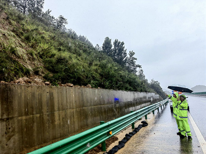 依托各收費(fèi)站、服務(wù)區(qū)、停車區(qū),組織一線人員對(duì)站區(qū)周邊開展隱患排查,確保自身安全和臨時(shí)停駐旅客安全。路巡隊(duì)加大巡查密度,確保道路上出現(xiàn)任何情況都能第一時(shí)間發(fā)現(xiàn),迅速采取應(yīng)對(duì)措施。公司領(lǐng)導(dǎo)帶領(lǐng)安全環(huán)保部對(duì)全線進(jìn)行巡查,突出邊坡、橋梁和隧道出入口等易發(fā)生泥石流、滑坡、塌方的高風(fēng)險(xiǎn)部位,現(xiàn)場(chǎng)進(jìn)行風(fēng)險(xiǎn)評(píng)估、組織處治工作。