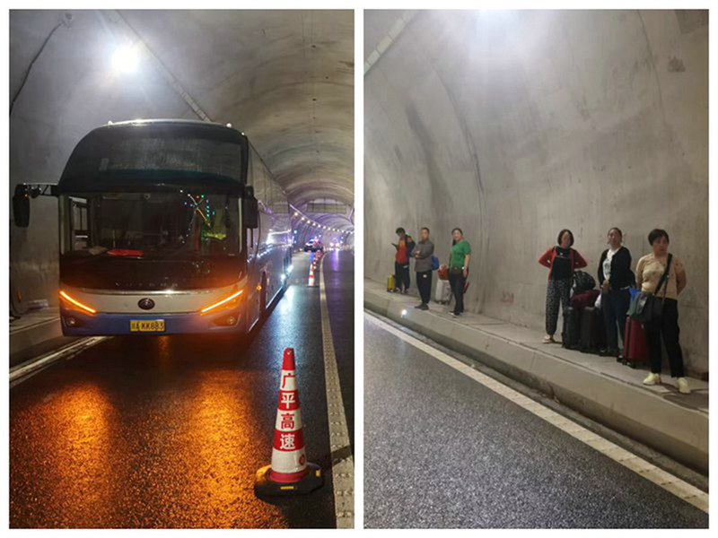 當(dāng)日15時(shí)25分,一輛長(zhǎng)途客車在駛?cè)氩駧X里隧道約400米處突發(fā)故障拋錨,停在了貨車道,司機(jī)在開啟危險(xiǎn)報(bào)警閃光燈后撥打了廣平高速救援電話和所屬公司電話(要求調(diào)派轉(zhuǎn)運(yùn)車輛)。