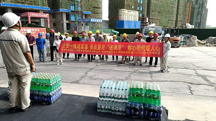 湖北公安訊(通訊員曾振偉)7月18日,受新疆建咨昆侖工程建設(shè)有限責(zé)任公司工會(huì)委托,該公司所屬的湖北省公安縣國城?天驕壹品項(xiàng)目負(fù)責(zé)人帶領(lǐng)項(xiàng)目部團(tuán)隊(duì),對高溫下堅(jiān)守崗位的施工工人進(jìn)行了慰問,為他們送去了礦泉水、可口可樂、雪碧等防暑降溫物品,以實(shí)際行動(dòng)彰顯公司對一線作業(yè)人員的關(guān)懷。