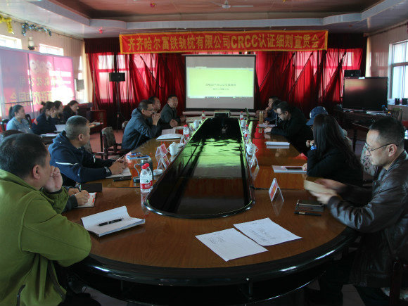 近日,中鐵二十三局二公司齊齊哈爾富鐵軌枕有限公司在公司三樓會議室召開了《CRCC產品認證實施規(guī)則 預應力混凝土枕》(以下簡稱“實施規(guī)則”)宣貫會。公司聘請了CRCC認證專家向公司管理、技術人員進行了詳細解讀。公司班子成員總經理張樹才、副總經理王世忠、總工程師王建、工會負責人王輝及公司機關部室負責人、專業(yè)技術人員等30余人參加了此次宣貫會。