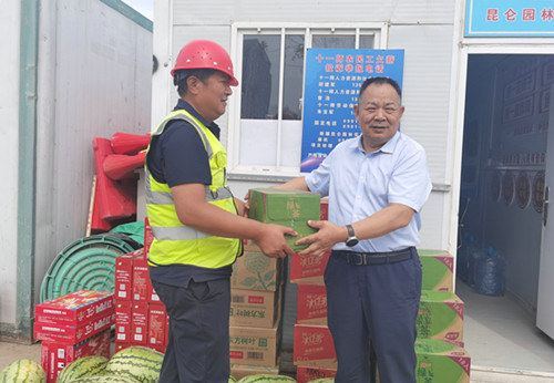 烏魯木齊訊(通訊員 趙泉友)盛夏時(shí)節(jié),熱浪襲人,高溫天氣給一線職工帶來嚴(yán)峻考驗(yàn)。7月30日,建咨集團(tuán)黨委書記、董事長(zhǎng)鄧如才,赴昆侖園林公司承接的金風(fēng)科技白鳥湖創(chuàng)新中心項(xiàng)目二期三期景觀綠化工程項(xiàng)目,為在高溫中堅(jiān)守崗位的職工們送去夏日的清涼與慰問。