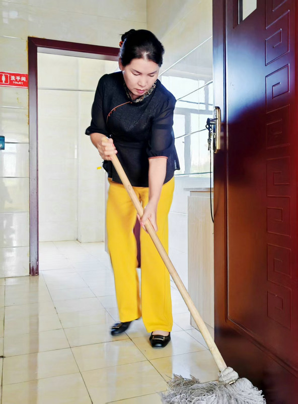圖1為:清晨,史云智院長年日復(fù)一日,堅(jiān)持帶頭做好養(yǎng)老優(yōu)質(zhì)服務(wù),在各護(hù)理區(qū)長者房間和衛(wèi)生間做好保潔工作。