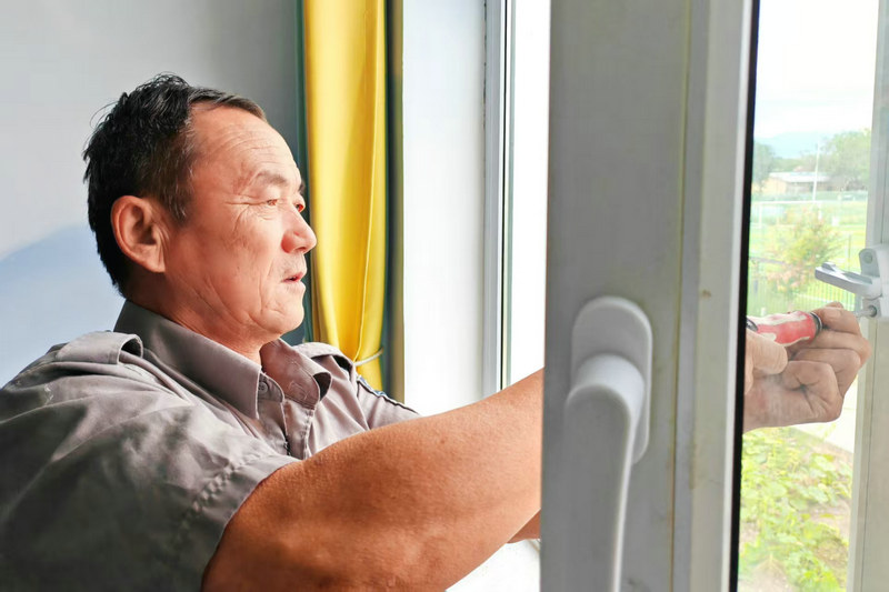 圖4為:保安員王光軍正在維修長老房間窗戶。
