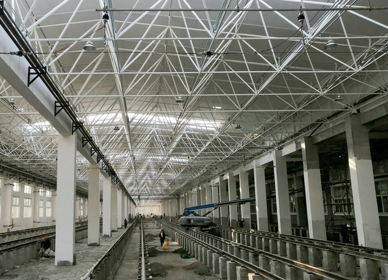 中鐵一局建安公司西安地鐵一號線二期改擴(kuò)建工程項目,主要負(fù)責(zé)西咸車輛基地和灞河停車場改擴(kuò)建施工,主要施工任務(wù)為在西咸車輛段既有停車列檢庫南側(cè)貼建3跨6線停車列檢庫,在灞河停車場既有停車列檢庫北側(cè)貼建1跨2線周月檢庫。