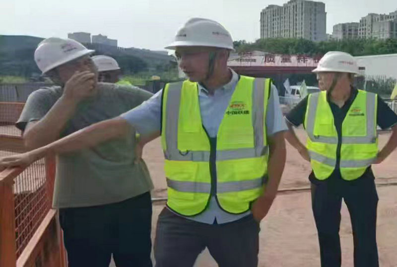 項(xiàng)目經(jīng)理王磊(右2)在現(xiàn)場巡查督導(dǎo)