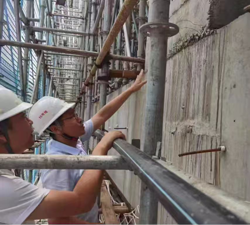 總承包部副指揮長(zhǎng)兼總工程師楊振(右)嚴(yán)格把控每道工序質(zhì)量