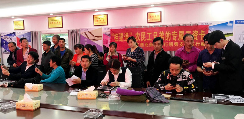 本報南寧訊(通訊員王敏)4月19日,由中鐵三局線橋公司南寧市軌道交通4號線項目聯(lián)合北部灣銀行,通過派駐現(xiàn)場銀行工作人員為項目農(nóng)民工辦理“桂建通”工資卡,從而保證民工兄弟們按時、足額收到工資。