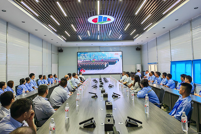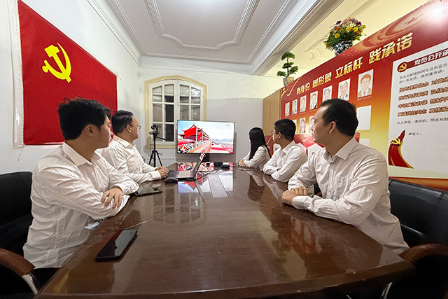 “開始了,開始了!”當(dāng)?shù)貢r(shí)間凌晨2點(diǎn),北部非洲區(qū)項(xiàng)目會(huì)議室內(nèi)燈火通明,氣氛熱烈。大家早早守候在屏幕前,懷著無比激動(dòng)和崇敬的心情,期待著這一莊嚴(yán)神圣時(shí)刻的到來。為第一時(shí)間收看閱兵盛況,遠(yuǎn)在萬里之外的北部非洲區(qū)積極克服時(shí)差困難,準(zhǔn)時(shí)組織干部職工集體觀看,共同見證這一莊嚴(yán)隆重、鼓舞人心的歷史時(shí)刻。(韓蒙蒙供稿)