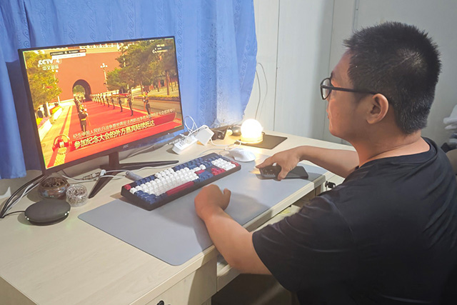 北京天潤公司組織全體職工集中觀看了紀(jì)念大會(huì)直播實(shí)況,共同回顧抗戰(zhàn)歷史,緬懷革命先烈,厚植愛國情懷與使命擔(dān)當(dāng)。觀看期間,全體職工專注投入,當(dāng)受閱部隊(duì)的威武英姿與新型武器裝備不斷映入眼簾時(shí),大家心中油然升起滿滿的民族自豪感,深刻感受到了國家發(fā)展的輝煌成就和民族復(fù)興的堅(jiān)定步伐。(馮子秋供稿)