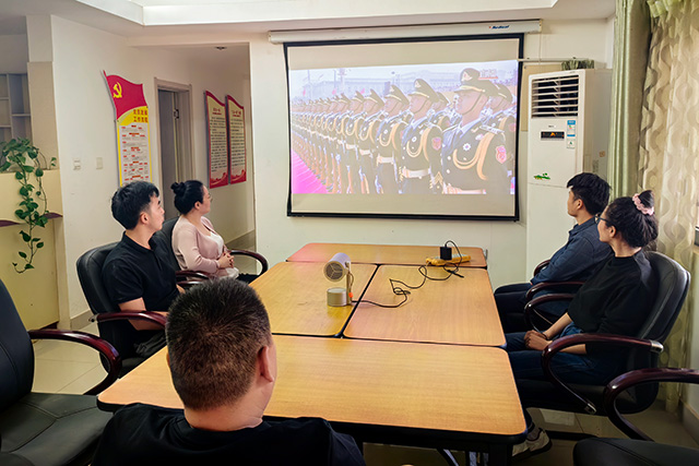 上午9時(shí),雄壯的國歌在天安門廣場(chǎng)莊嚴(yán)奏響,四川資陽分公司會(huì)議室全體人員肅立齊唱國歌,神情莊重專注。當(dāng)徒步方隊(duì)步伐鏗鏘、裝備方隊(duì)威武行進(jìn)、空中梯隊(duì)呼嘯而過時(shí),會(huì)議室屢屢爆發(fā)出熱烈掌聲和由衷贊嘆。這一刻,屏幕內(nèi)外熱血奔涌,家國情懷激蕩交融。(張玲麗供稿)