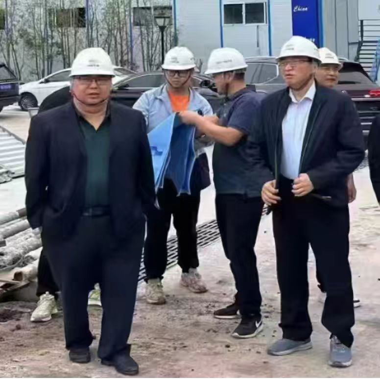 總承包部指揮長李兵(左1)、黨支部書記王向平(右1)帶頭深入現(xiàn)場及時(shí)解決施工難題