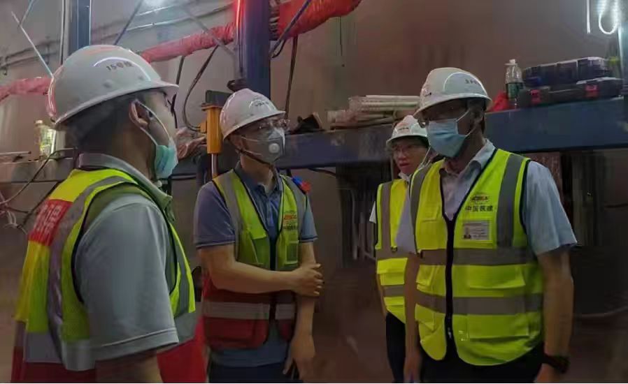 總承包部安全監(jiān)督部經(jīng)理李志鋒(左1)在現(xiàn)場(chǎng)安全檢查