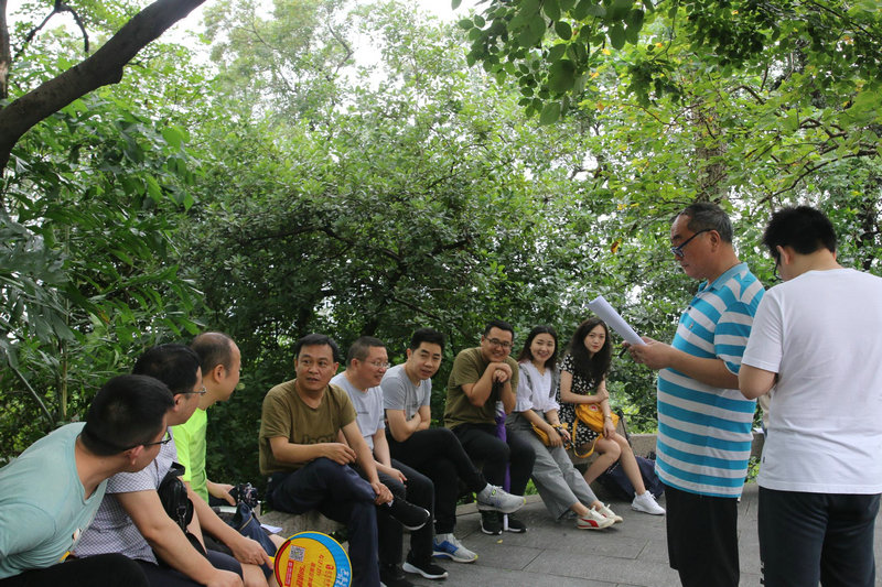 到達(dá)越秀公園,全體人員簡單的合影留念,就興致高昂地開始了徒步,一路上感受著山林里的新鮮空氣和優(yōu)美的風(fēng)景,不時傳來大家歡快的笑聲,時而有人駐足,用手機(jī)記錄下這有意義的一刻,大家感到消遣放松,很是愜意。徐徐的微風(fēng)、參天的大樹拂去了羊城特有的濕熱,天氣涼爽,沿途景色優(yōu)美,林木蒼翠。聲聲鳥鳴不絕于耳,縷縷花香撲面而來,山野之色清新迷人。經(jīng)過一個小時的時間,大家陸續(xù)到達(dá)“中山紀(jì)念碑”,放眼遠(yuǎn)望,青山疊嶂,峰巒綿延,大家被大自然的美景深深陶醉,紛紛合影留念。