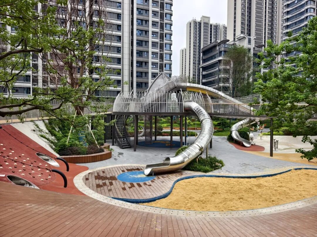作為社區(qū)親子生活的重要補(bǔ)充,“尋寶森林”主題兒童游樂場(chǎng)以童趣視角打造沉浸式體驗(yàn):色彩斑斕的“堅(jiān)果城堡”成為孩子們的歡樂據(jù)點(diǎn),歡樂蹦床、探險(xiǎn)攀爬網(wǎng)與木棧道、玻璃棧道組成趣味“森林闖關(guān)”路線,各式滑滑梯串聯(lián)起“叢林穿梭 樂趣,更有專為低齡兒童設(shè)計(jì)的蹺蹺板、搖搖馬。開放當(dāng)日,業(yè)主們紛紛攜子女體驗(yàn),孩子們?cè)谠O(shè)施間穿梭嬉戲,稚嫩歡笑聲回蕩社區(qū),為秋日增添滿滿暖意。