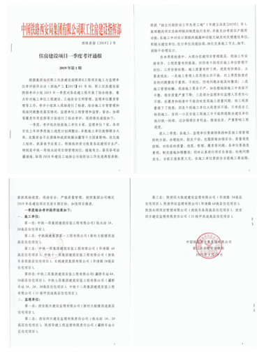 (西安訊)4月19日,中國鐵路西安集團(tuán)有限公司職工住房建設(shè)指揮部發(fā)布了住房建設(shè)項目一季度考評通報,在本次檢查的8家施工單位,中鐵一局南郊棚改項目部再次榮獲季度綜合考評第一名,受到特別表揚。