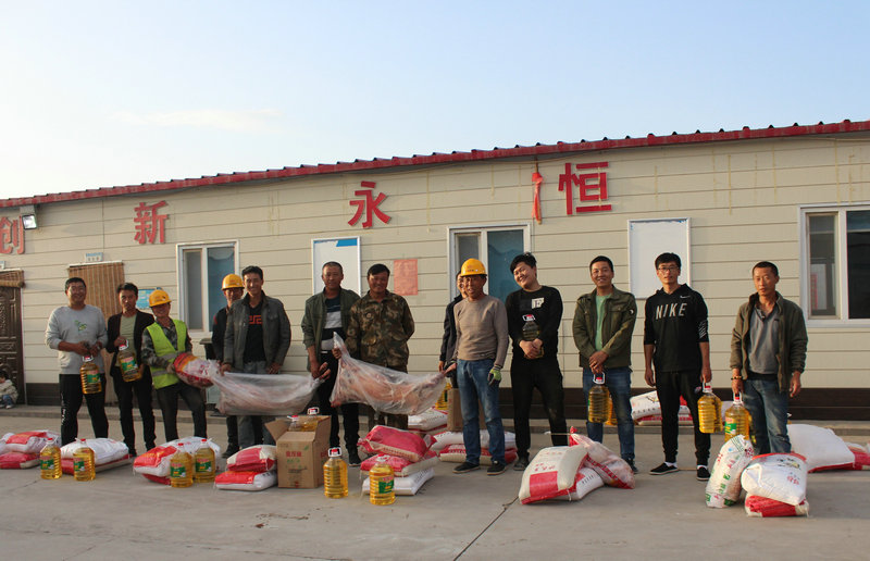 4月28日下午,在第129個國際勞動節(jié)來臨之際,為營造歡樂祥和的節(jié)日氛圍,中國鐵建大橋工程局京藏5標(biāo)項目部對節(jié)日期間仍堅守在生產(chǎn)一線的12個施工隊伍致以親切的慰問,送上12袋大米、12袋白面、24桶植物油、150斤羊肉、390斤豬肉等慰問品,并真誠祝愿他們節(jié)日快樂!