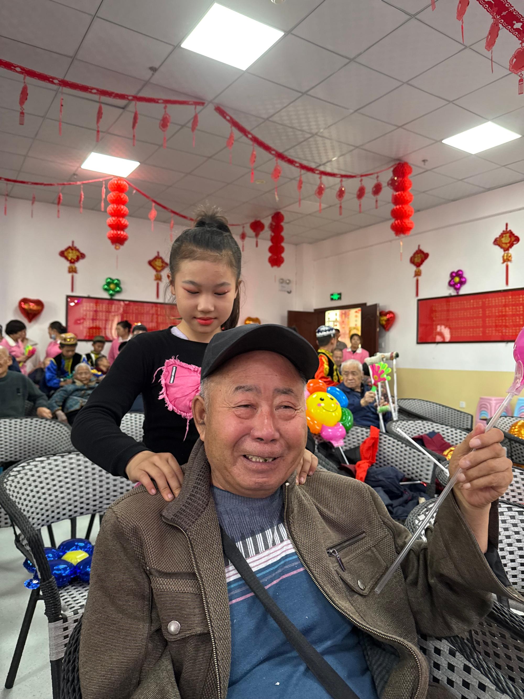 活動在孩子們清脆的歌聲中拉開序幕。伴隨著輕快的旋律,孩子們或獨(dú)唱或合唱,稚嫩的嗓音里滿是真誠,引得爺爺奶奶們頻頻點頭微笑。隨后,舞蹈《哇哈哈》精彩登場,孩子們身著鮮艷的服裝,邁著活潑的舞步,靈動的身影在舞臺上跳躍,將現(xiàn)場的歡樂氛圍推向高潮,長者們的臉上都洋溢著幸福的笑容,紛紛拿出手機(jī)記錄下這熱鬧的瞬間。
