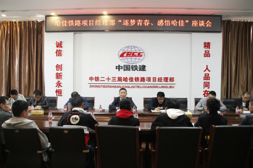 走進青年、傾聽青年、做青年員工的知心人, 5月2日,中鐵二十三局集團二公司哈佳鐵路項目部組織開展了“逐夢青春,感悟哈佳”青年座談會,讓一場暢所欲言的談心,一次別開生面的暢想成為哈佳項目青年員工崗位創(chuàng)效的潤滑劑。