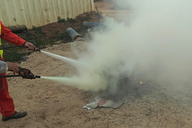 安哥拉地處非洲南部氣候干燥,植被易燃,火災(zāi)風(fēng)險(xiǎn)較高。松貝項(xiàng)目緊密結(jié)合當(dāng)?shù)貧夂蛱攸c(diǎn)與施工實(shí)際,精心制定演練方案,將理論培訓(xùn)與實(shí)戰(zhàn)操練有機(jī)融合。在培訓(xùn)環(huán)節(jié),安全負(fù)責(zé)人系統(tǒng)講解了施工區(qū)域火災(zāi)風(fēng)險(xiǎn)識(shí)別、初期火災(zāi)撲救方法、消防器材規(guī)范使用等內(nèi)容,并重點(diǎn)解讀了項(xiàng)目應(yīng)急預(yù)案中的報(bào)警響應(yīng)、人員疏散、協(xié)同救援等關(guān)鍵流程。通過(guò)真實(shí)案例復(fù)盤(pán),直觀展示了火災(zāi)事故的嚴(yán)重危害,進(jìn)一步強(qiáng)化了全員“隱患零容忍、防控?zé)o死角”的安全意識(shí)。