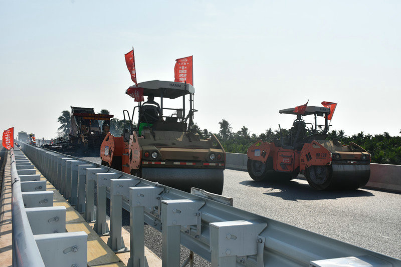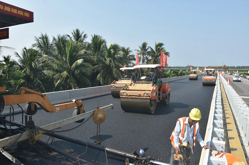 4月10日上午,中國鐵建大橋局一公司文瓊高速路面2標(biāo)開始鋪筑萬泉河特大橋左幅瀝青上面層試驗段,為路面2標(biāo)下步全面開始瀝青上面層攤鋪施工積累了寶貴的經(jīng)驗。