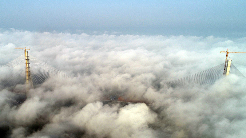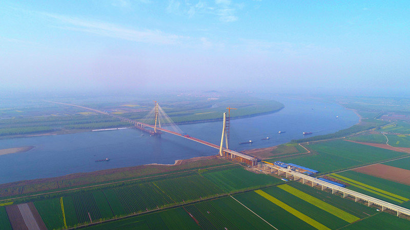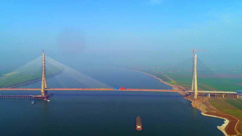 石首長(zhǎng)江大橋全長(zhǎng)12.2公里,為雙塔斜拉橋,一跨820米飛躍長(zhǎng)江天塹,大橋跨度位居世界第七,綜合施工難度位居世界同類橋梁前列。