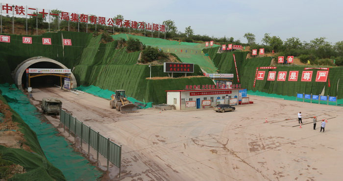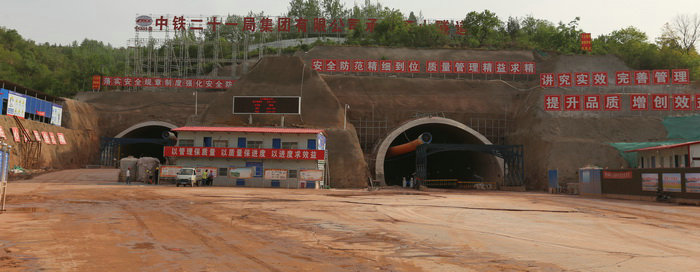 滎陽G234改建工程Ⅱ標(biāo)項(xiàng)目部面臨的壓力不僅僅來自環(huán)保方面,而且還面臨著工程量大、工期緊、重難點(diǎn)工程挑戰(zhàn)。但建設(shè)者別無選擇,他們迎難而上直面挑戰(zhàn)。萬山隧道是Ⅱ標(biāo)控制工程,也是全線重難點(diǎn)工程。雖然這座隧道左右線加起來只有3175米,但洞口施工場面十分宏大。在隧道出口,開挖裸露的山體被綠色防塵網(wǎng)嚴(yán)嚴(yán)實(shí)實(shí)地覆蓋,地面全部硬化,綠色施工理念在這里得到充分體現(xiàn)。各種宣傳牌和展板傳遞著中國鐵建的企業(yè)文化理念。“周密策劃,科學(xué)管理,忠于設(shè)計(jì),精心施工,敬畏生命,工地就是戰(zhàn)場,工期就是尊嚴(yán)”等標(biāo)語展示了中鐵二十一局三公司注重安全質(zhì)量,嚴(yán)守信譽(yù),兌現(xiàn)工期的莊嚴(yán)承諾。