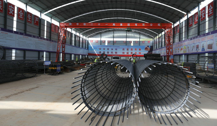 圖為鋼構(gòu)廠加工鋼筋籠工期壓力前所未有,地方政府環(huán)保管控力度空前,在這雙重的巨大壓力下,滎陽G234項(xiàng)目部不僅沒有被壓垮,反而激發(fā)出了他們無窮的潛能。為了業(yè)主的重托,為了企業(yè)的信譽(yù),他們拼了,發(fā)起了一次又一次集團(tuán)沖鋒。副經(jīng)理兼計(jì)劃部長王輝說:“今年前三個(gè)月完成產(chǎn)值1.2億元,4月上升到7千萬,5月份計(jì)劃完成8千萬元。”公司副總經(jīng)理雷榮仁表示,6月份產(chǎn)值將達(dá)到1億元。就在截稿時(shí)又傳來好消息,5月份在業(yè)主、監(jiān)理組織開展的“質(zhì)量月”活動(dòng)中,項(xiàng)目部獲得獎(jiǎng)勵(lì)50萬元。
