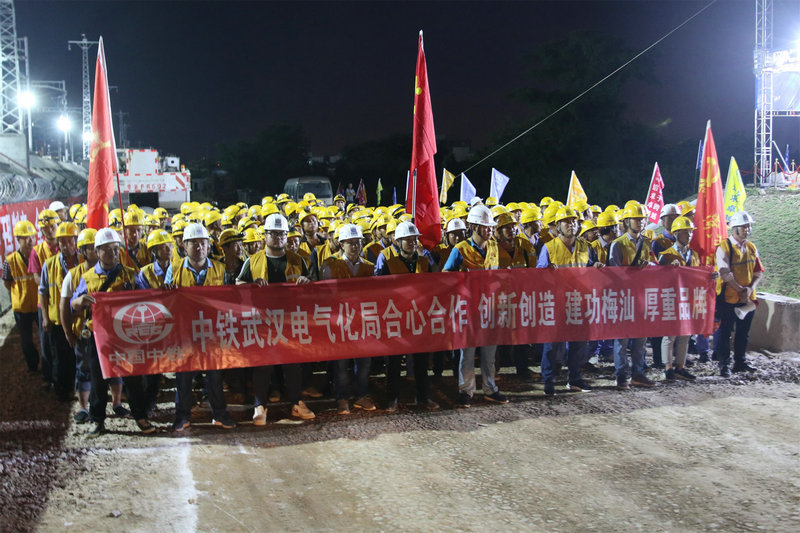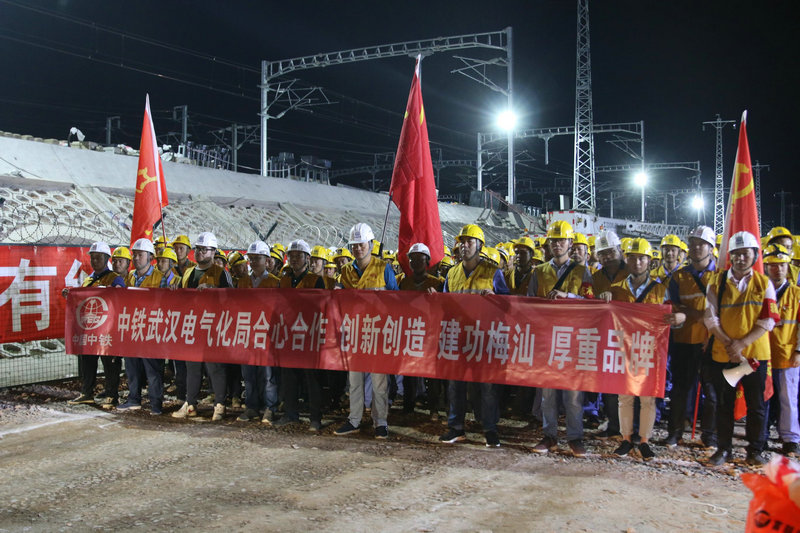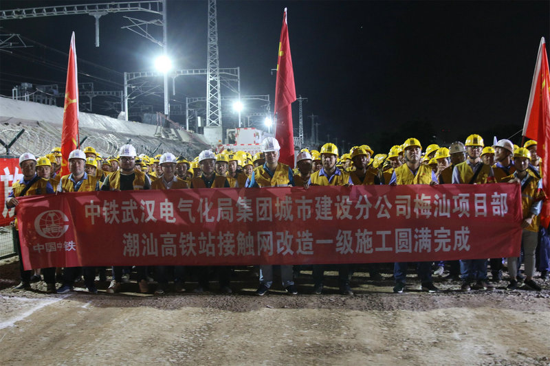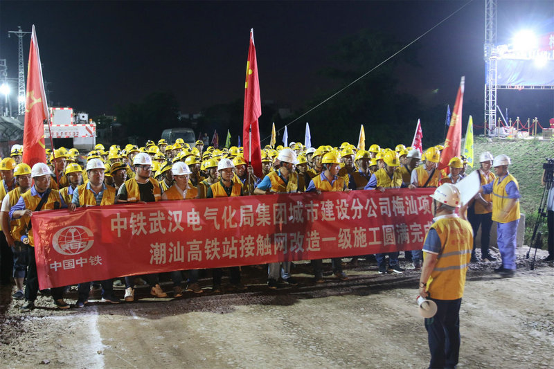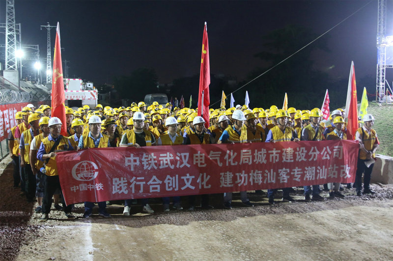 潮汕站改工程,是中鐵武漢電氣化局集團(tuán)城市建設(shè)分公司首次在粵東地區(qū)進(jìn)行的既有線站改施工,能否按期安全完成首次綜合要點(diǎn)施工任務(wù)意義重大。為確保此次任務(wù)勝利完成,集團(tuán)公司黨委副書記、工會(huì)主席、副總經(jīng)理吳國(guó)琦,集團(tuán)公司副總工程師萬(wàn)金親臨現(xiàn)場(chǎng),坐鎮(zhèn)指揮;分公司黨委書記何明全,黨委副書記、紀(jì)委書記、工會(huì)負(fù)責(zé)人熊衛(wèi)東,副總經(jīng)理、總工程師陳武等領(lǐng)導(dǎo)靠前指揮,項(xiàng)目黨工委書記吳軍帶領(lǐng)班子成員現(xiàn)場(chǎng)盯崗。“要點(diǎn)”施工前,建設(shè)者不等不靠,積極主動(dòng)與中國(guó)鐵路廣州局等有關(guān)部門協(xié)調(diào)并開展站改工作,克服了前期既有線施工手續(xù)繁瑣、施工周期長(zhǎng)等不利因素,不斷優(yōu)化施工方案,科學(xué)組織施工,加強(qiáng)現(xiàn)場(chǎng)盯控,嚴(yán)把質(zhì)量關(guān),確保了站改任務(wù)的圓滿完成,得到了中國(guó)鐵路廣州局對(duì)集團(tuán)公司既有線施工能力的認(rèn)可。