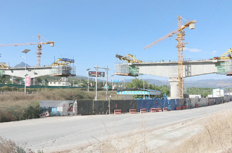正在進行掛籃施工的麗香鐵路獨古當大橋9號墩