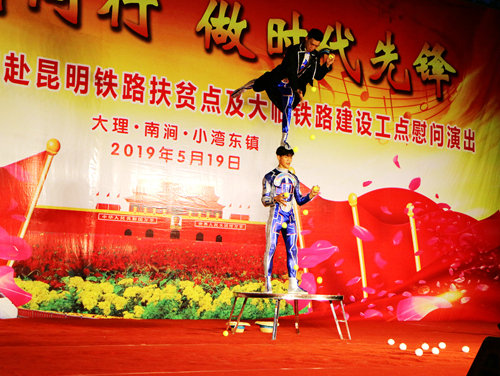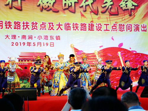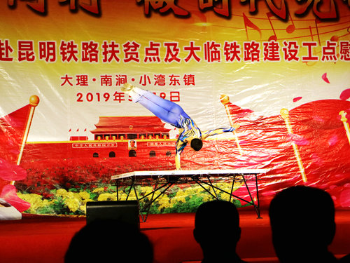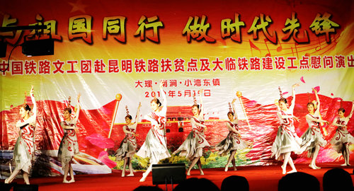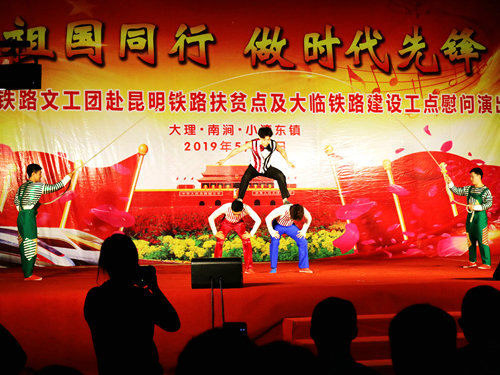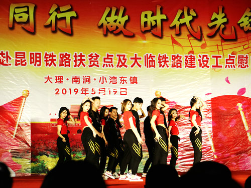 中國鐵路工程建設(shè)網(wǎng)訊(通訊員 鄭建軍)5月19日,中國鐵路文工團(tuán)以“與祖國同行·做時(shí)代先鋒”為主題的文藝晚會(huì)在中鐵十二局集團(tuán)一公司大臨三項(xiàng)目部工地精彩上演,數(shù)十名演職人員登臺(tái)獻(xiàn)藝,其中不乏多次獲得國家級(jí)演出金獎(jiǎng)的節(jié)目和國家一級(jí)演員,強(qiáng)大的演出陣容為一線職工和駐地百姓送上了相聲、歌舞、雜技、小品等精彩的文藝大餐。據(jù)悉,本次演出舉辦地小灣東鎮(zhèn)是昆明局集團(tuán)定點(diǎn)扶貧點(diǎn),文藝演出為打響扶貧攻堅(jiān)戰(zhàn)、決勝大臨鐵路建設(shè)鼓舞了士氣。