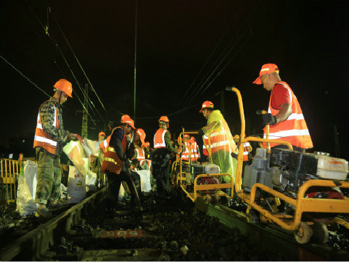 晚上19:30分,駐站聯(lián)絡員下達了封鎖命令號,隨著現(xiàn)場施工負責人的一聲令下,施工機械、作業(yè)人員迅速行動,并按照施工前的技術交底和各項分工迅速奔向各自的工作崗位,五分鐘后全員到達了既定的“手術點”。