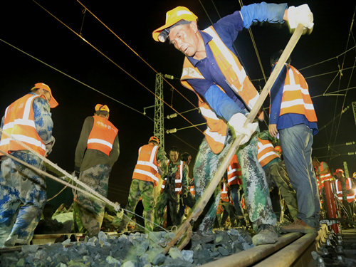 “今晚我們要接通秀山站西部咽喉與正線的一組關(guān)鍵性道岔,只許成功,不能失敗”,施工命令下達前,項目經(jīng)理對全體人員下達了最后一條指令。