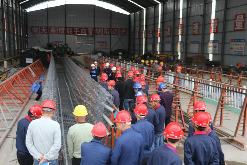 觀摩團首先來到張扁高速公路項目預(yù)制梁場,項目部總工結(jié)合現(xiàn)場成品預(yù)制梁講解了箱梁質(zhì)量控制要點,包括箱梁鋼筋綁扎、鋼筋保護層厚度、合模質(zhì)量、封端、鑿毛、張拉壓漿等質(zhì)量規(guī)范;隨后觀摩團在項目部的帶領(lǐng)下,來到項目K64+600-K67+700段路基、涵洞進行觀摩,項目部總工對路基質(zhì)量控制要點和橋涵施工質(zhì)量控制要點進行了講解。
