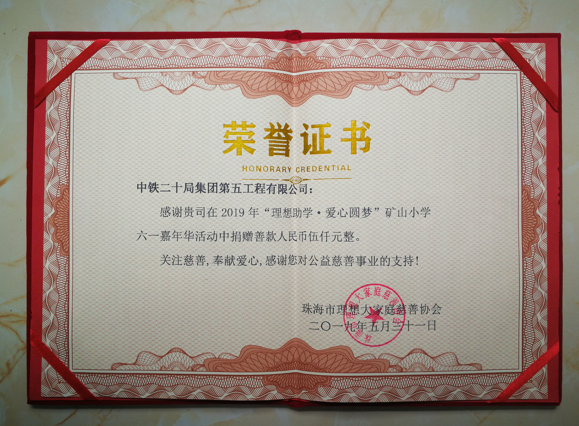 本站珠海訊(通訊員 李海明)“讓愛心在希望中綻放,讓希望在教育中成長”。5月31日,中鐵二十局集團公司天羽道隧道工程項目部與珠海市金灣區(qū)教育局、珠海市金灣區(qū)文明辦、珠海市理想大家庭慈善協(xié)會、珠海市紅旗鎮(zhèn)小學(xué)攜手創(chuàng)辦了“理想助學(xué),愛心圓夢”六一嘉年華社會公益活動。