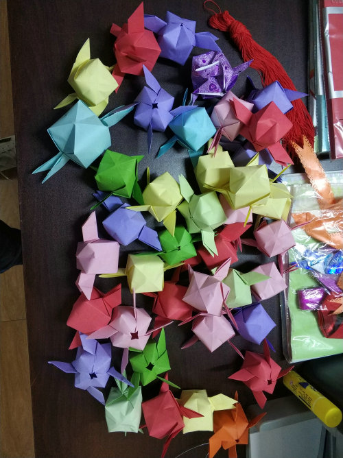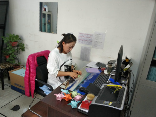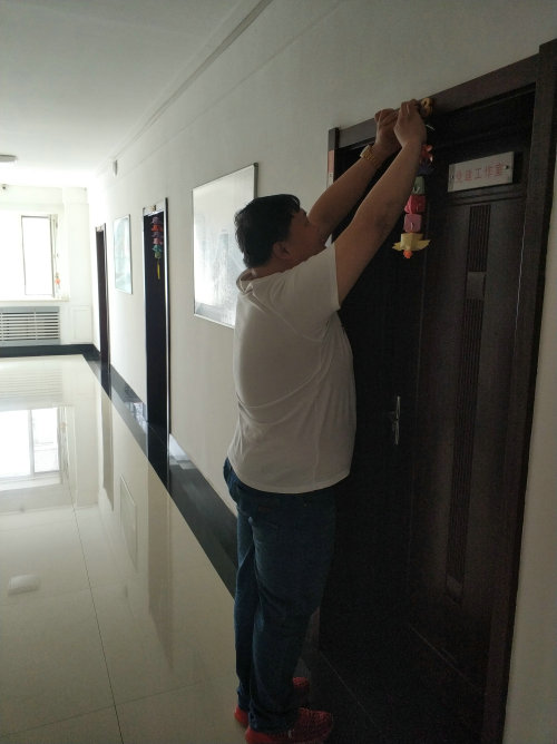 繽彩葫蘆,節(jié)日寄福。一張張彩紙?jiān)谥讣馍咸鴦?dòng),折、壓、捏、吹,五彩斑斕的紙葫蘆便疊成了,兩角的、四角的,一個(gè)個(gè)猶如俏皮的精靈,在門上隨風(fēng)搖擺,應(yīng)和著一張張笑臉,為節(jié)日增添了和諧的氣息,這些紙葫蘆寄托著平安,寄托著哈佳情懷與節(jié)日情懷,包含了哈佳五年來積累的人氣與希望。