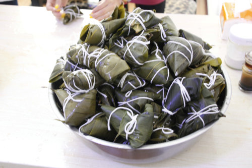 花樣粽籺,歡樂哈佳。豐富的食材搭配鮮美的粽葉,整個(gè)食堂彌漫著迷人的香氣,來來往往的身影更為節(jié)日增添了紅火的氣氛。捋粽葉,做漏斗,填糯米,壓緊實(shí),再封口,在巧手翻飛下一個(gè)個(gè)粽子便挺立在盤子里,蜜棗的,葡萄的,果脯的……種類多樣,有的如小嬌娘,有的又如粗獷漢,造型花樣各有不同,但卻是每個(gè)人的悉心作品。今日餐桌上的粽子都是大家的比賽成果,展現(xiàn)了集體的智慧與協(xié)作的力量,里面包含了每個(gè)人對(duì)節(jié)日的期待與祝福,包含了建設(shè)一線員工們?cè)诠?jié)日里對(duì)家人的思念。