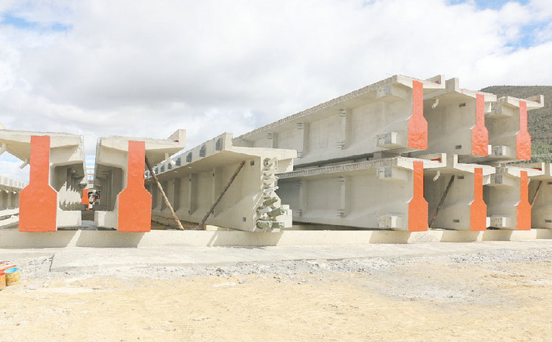 制梁施工階段,全體員工克服強(qiáng)烈的高原反應(yīng)、高地震烈度、高地質(zhì)風(fēng)險(xiǎn)、交通不便和建筑材料組織難度大等諸多困難,精心組織,精心施工,團(tuán)結(jié)一心,務(wù)實(shí)高效,全力推進(jìn)梁場建設(shè),于2018年9月生產(chǎn)出第一片T梁,并順利通過國家級認(rèn)證。截止目前,該制梁場已經(jīng)預(yù)制T梁91片。