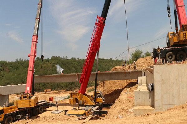 6月18日,陜西省合銅高速公路杜樹溝大橋開始架設(shè)橋梁,隨著中鐵十八局局集團(tuán)隧道公司橋梁建設(shè)者將第一片30米長的預(yù)制箱梁穩(wěn)穩(wěn)落在橋墩上,標(biāo)志著合銅高速9標(biāo)洞外橋梁施工取得突破性進(jìn)展,標(biāo)段內(nèi)9座大橋進(jìn)入橋梁架設(shè)階段。