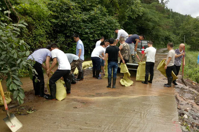 圖為員工裝沙袋堵水 夜里凌晨2點30分,暴雨越下越大,鋼便橋河水位急漲,洪水越來越猛,平時清澈的小河瞬間變成了一條肆無忌憚的猛獸,洪水裹著樹枝和雜物不斷吞噬著鋼便橋,雜物堵塞了橋孔。對橋產生了很大隱患,如果不及時疏通,有可能被洪水沖垮,直接威脅著橋頭上的村民房屋。值班搶險人員迅速進行疏通清理,并采取穩(wěn)固措施,利用繩索牽制,清除雜物,經過一個多小時的奮戰(zhàn),隱患全部排除鋼便橋被牢牢的控制,確保了鋼便橋的安全。