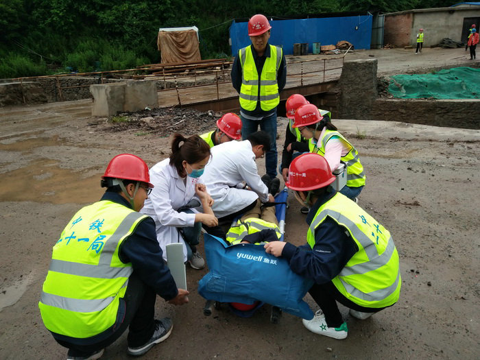 對傷員的應(yīng)急救援演練 此次演練是模擬平天PTKZJL1標(biāo)段關(guān)山進(jìn)口突降暴雨,施工隊駐地上游河水流量激增,突發(fā)洪水,部分房屋沖毀,即將淹沒關(guān)山進(jìn)口施工隊駐地及進(jìn)口隧道施工現(xiàn)場,項目應(yīng)急救援領(lǐng)導(dǎo)小組迅速啟動應(yīng)急預(yù)案,立即開展救援工作。演練分預(yù)警報告、集合分工、排除險情和匯報總結(jié)四步進(jìn)行,全體員工及勞務(wù)人員分成搶險救援、善后處理、警戒保衛(wèi)、通訊聯(lián)絡(luò)、醫(yī)療救援和物資保障等六個小組。參加演練人員按照預(yù)案,服從指揮、各司其職、密切配合,保證了防洪防汛應(yīng)急演練活動順利完成。