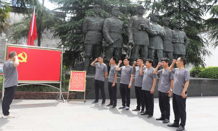 圖為黨員們合影 通過參觀紅色教育基地,重溫黨的光榮歷史,進(jìn)一步堅定了全體黨員不忘初心跟黨走,牢記使命立新功的信念。最后全體黨員面對鮮紅的黨旗,黨支部書記帶領(lǐng)黨員舉起右手莊嚴(yán)宣誓,重溫入黨誓詞,增強(qiáng)了黨員的光榮感、責(zé)任感、使命感、努力將革命前輩的英雄事跡化作動力,奮發(fā)努力,愛崗敬業(yè),為企業(yè)的創(chuàng)新發(fā)展做出貢獻(xiàn)。