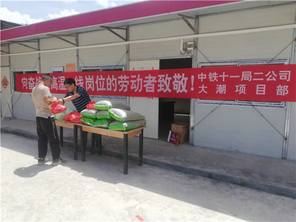 連日來(lái),梅州地區(qū)持續(xù)高溫,晝間工人作業(yè)強(qiáng)度大,施工現(xiàn)場(chǎng)遮蔽物較少,一線工人極易發(fā)生中暑危險(xiǎn)。對(duì)此,中鐵十一局二公司大潮項(xiàng)目領(lǐng)導(dǎo)高度重視,要求項(xiàng)目辦公室購(gòu)置了一批防暑用品,于7月2日上午由項(xiàng)目安全總監(jiān)陳沛帶隊(duì),將絲絲清涼送到了每個(gè)施工班組,并向一線勞動(dòng)者致敬。