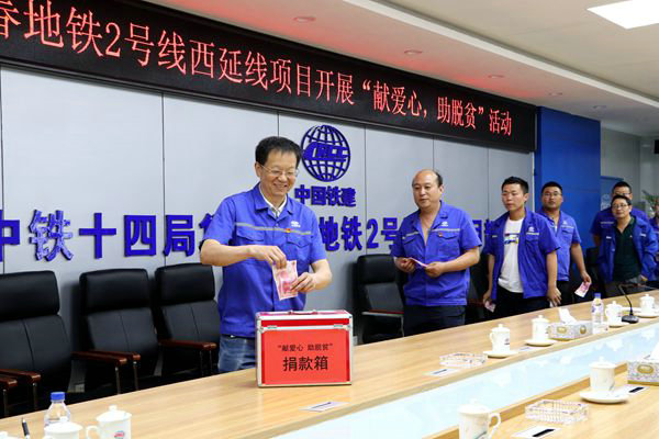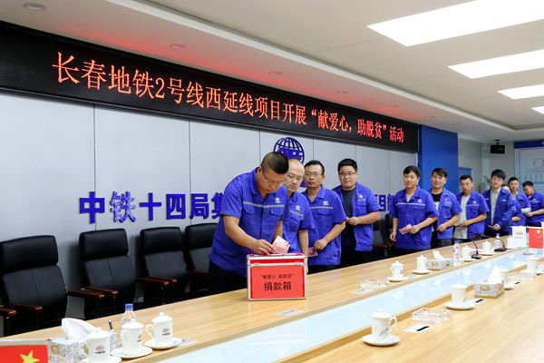 中國鐵路工程建設網訊(通訊員 蘭彩霞)為積極響應集團公司、公司的號召,7月4日下午3:00,中鐵十四局集團長春地鐵2號線西延項目部黨支部舉行了“獻愛心,助脫貧”捐款活動。