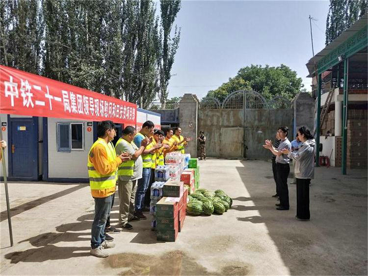 炎炎夏日 情系一線。7月7日,中鐵二十一局集團(tuán)公司黨委副書記、工會主席田愛平和工會組織權(quán)益部部長余霞在一公司黨委副書記、紀(jì)委書記關(guān)崇屹陪同下到和田扶貧項目慰問檢查指導(dǎo)工作。