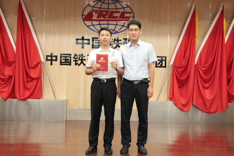 圖四、中國鐵建大橋局集團(tuán)人力資源部(黨委干部部)副部長、團(tuán)委書記孫立偉為一等獎選手頒獎