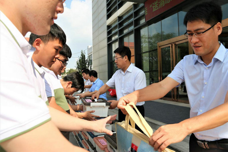 “家是哪里人?晚上宿舍有蚊子嗎?我平時(shí)就用這個(gè)牌的驅(qū)蚊用品。”一份清涼,一份關(guān)懷,這個(gè)親切地叮囑來(lái)自中鐵建大橋局電氣化公司2019年新學(xué)員培訓(xùn)基地“送清涼”活動(dòng)現(xiàn)場(chǎng)。