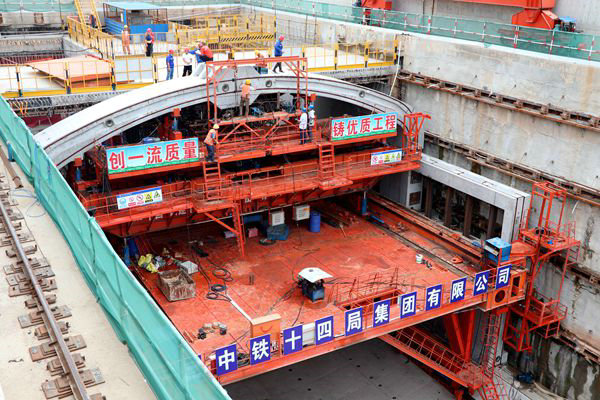 中鐵十四局集團(tuán)承建的長春地鐵2號(hào)線西延線設(shè)計(jì)為雙線,總共包括兩站兩區(qū)間,分別是捷達(dá)大路站和汽車公園站;西湖站(不含)~捷達(dá)大路站~汽車公園站區(qū)間,線路全長2564.5米,其中,捷達(dá)大路站位于凱達(dá)北街與捷達(dá)大路交叉口環(huán)島內(nèi),該車站全長187.6米,為裝配式地鐵車站,車站兩端為現(xiàn)澆結(jié)構(gòu),基坑開挖深度約20.8米~21.8米,基坑支護(hù)結(jié)構(gòu)采用鉆孔灌注樁加內(nèi)支撐和鉆孔灌注樁加錨索方式施工,中間標(biāo)準(zhǔn)斷面為預(yù)制件拼裝段,總長126米,需要拼裝混凝土預(yù)制件63環(huán)(每環(huán)7塊)、共計(jì)441塊。目前已經(jīng)拼裝了65塊,預(yù)計(jì)該項(xiàng)工程將于今年9月中旬拼裝完成。