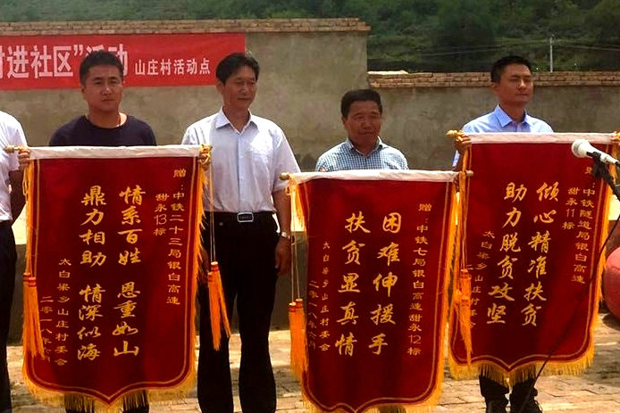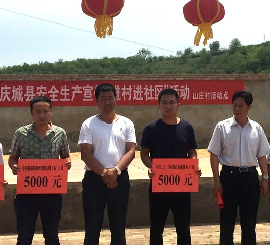 該項目對駐地以外村民的困難也是竭力相助。當?shù)弥獞c城縣安監(jiān)局組織為貧困地區(qū)太白梁鄉(xiāng)山莊村開展愛心捐助活動信息后,項目部第一時間派出了副經(jīng)理唐書恒趕赴現(xiàn)場。面對缺水少電、道路失修、生活窘迫的村民兄弟,項目部送上了五千元捐款。事后村委會專程送來錦旗“情系百姓、恩重如山;鼎力相助、情深似海”,再三表示他們得到的不僅僅是經(jīng)濟資助,更是精神上的鼓勵。