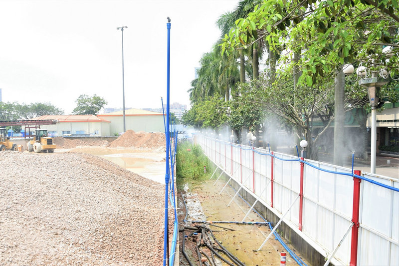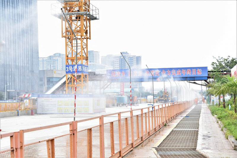 “皮帶運輸機安裝的坡度大,皮帶上的石子容易打滑,對基坑內(nèi)施工人員會造成安全隱患;坡度小,雖然能保證石子運輸平穩(wěn),但勢必會增加皮帶的節(jié)數(shù),這一節(jié)也要20多萬啊”,在王強勞模創(chuàng)新工作室,項目經(jīng)理王強與他的創(chuàng)新工作室團隊發(fā)動了頭腦風(fēng)暴。同時,項目部還邀請外部專家來協(xié)助皮帶運輸機的安裝,經(jīng)過反復(fù)試驗,發(fā)現(xiàn)坡度28度是最理想的狀態(tài)。為了保證大的石塊也能順利運送,項目部還在皮帶首節(jié)傳送處還安裝了一臺破碎機,機器內(nèi)有個篩子似的裝置,挖機將基坑內(nèi)的土石方倒入破碎機,大的石塊就會被截留住破碎成小石塊,然后順著皮帶運輸機的行走軌道,輸送到指定中轉(zhuǎn)區(qū)域。在中轉(zhuǎn)區(qū)域,項目部還安裝了自動噴淋除塵設(shè)備,100多個噴淋頭,起到了降塵、環(huán)保作用。