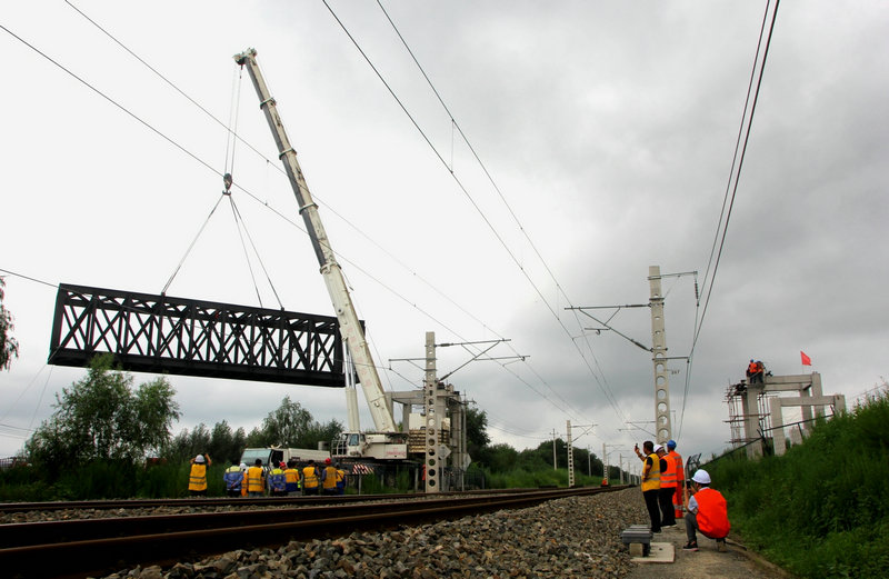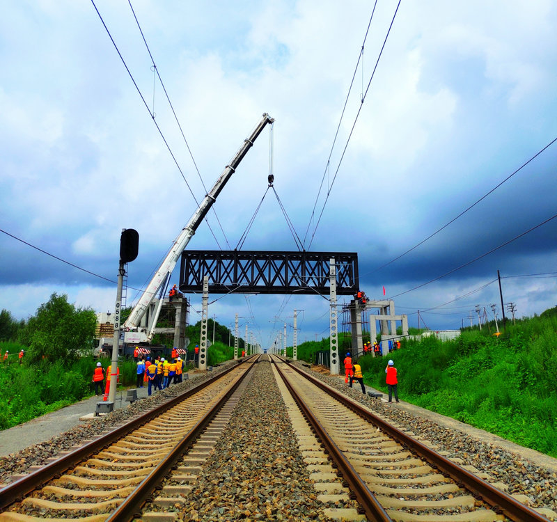 7月25日10時(shí)40分,哈爾濱至牡丹江鐵路電氣化改造項(xiàng)目濱綏線K58+711天橋跨既有線架設(shè)鋼梁,二級(jí)封鎖施工順利完成,為加快天橋人行梯道施工進(jìn)度創(chuàng)造了條件。